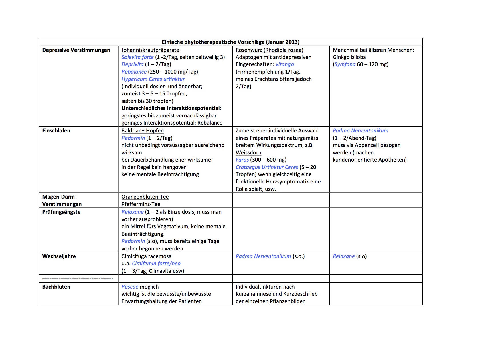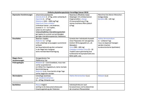 The following table - in German - offers some simple suggestions for natural plant-based medications. Please consult your physician before use.
